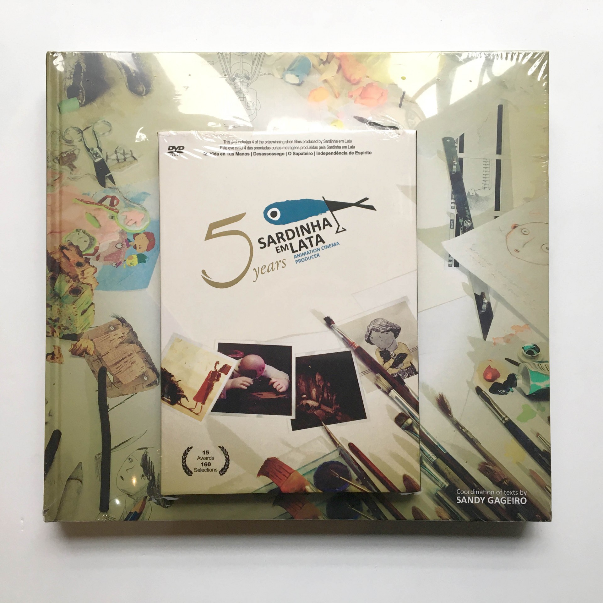 Pack livro + dvd comemorativos dos 5 anos da Sardinha em Lata - produtora de cinema de animação. Uma edição de luxo composta de livro de capa dura com 240 páginas com entrevistas e depoimentos de realizadores e ilustres do cinema de animação, assim como desenhos e fotografias dos filmes e processos de produção, acompanhado de um dvd com 2h de conteúdos: 4 curtas-metragens, making of, trailers e storyboards.
