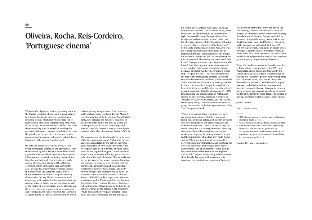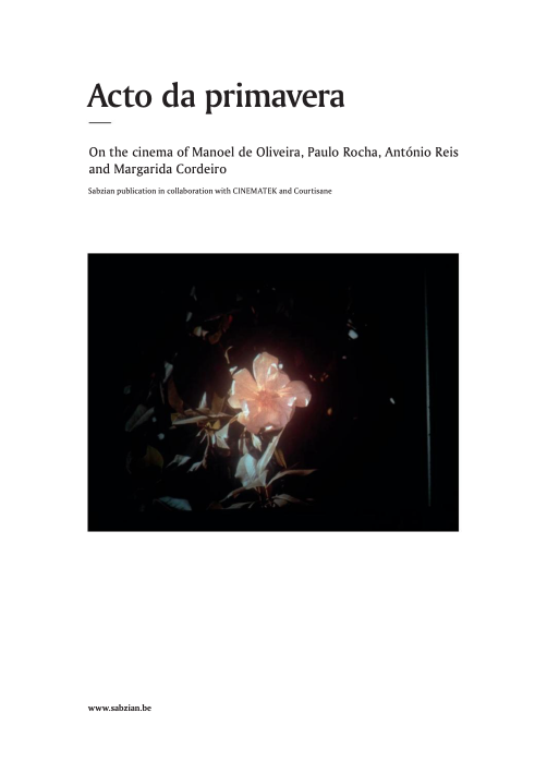 Publicação por ocasião do "Acto da primavera", um ciclo de cinema dedicado ao cinema de Manoel de Oliveira, Paulo Rocha, António Reis e Margarida Cordeiro. Uma colaboração entre a CINEMATEK, o Courtisane e a Sabzian.