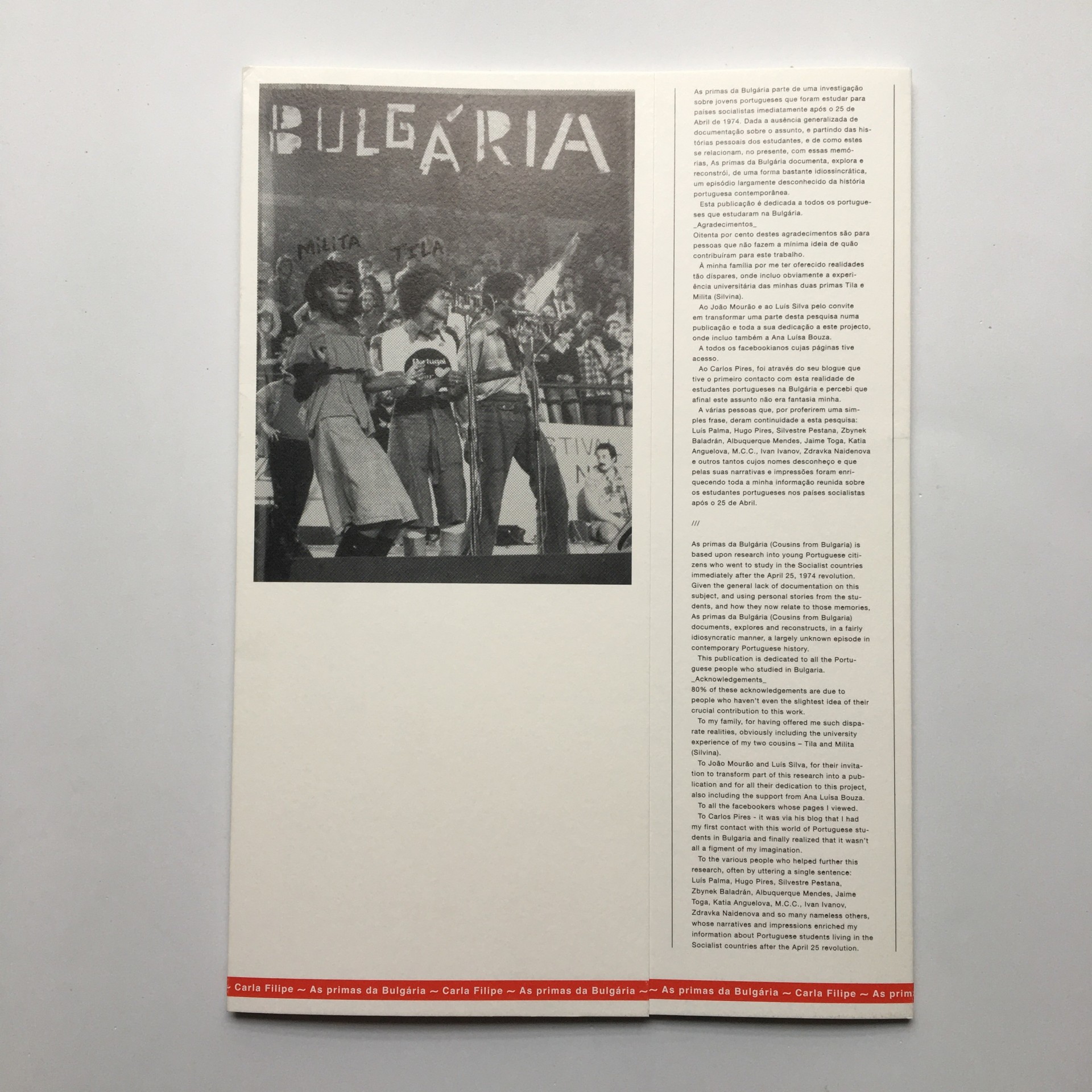 As primas da Bulgária é um livro de artista por Carla Filipe que documenta a pesquisa da artista acerca de cidadãos portugueses que estudaram em países Socialistas imediatamente a seguir à revolução de 25 de abril de 1974. Dada a falta de documentação geral em redor deste assunto e usando histórias pessoais destes mesmos estudantes e o modo como estes se relacionam com estas memórias, As primas da Bulgária documenta, explora e constrói, de uma maneira idiossincrática, um episódio geralmente desconhecido da História contemporânea portuguesa.