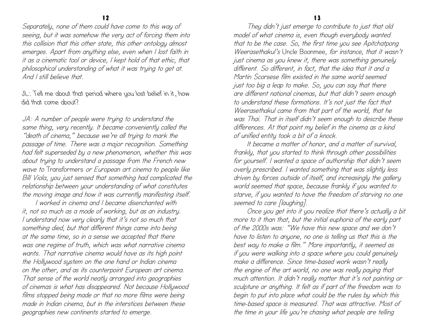In the form of a conversation with filmmaker and artist John Akomfrah, this book sets out to explore how his work with montage can be understood to articulate contemporaneity in sensuous ways. In multilayered video installations, sequences of images are forced into the same time and space, allowing the viewer to experience connections in her/his/their present. With examples from many of his key works, topics discussed include untold histories and the diaspora, migration, and “the enigma of arrival.” Akomfrah defines his way of working with montage not only as a technique but as an ethic, an ontology in which differences are brought together.