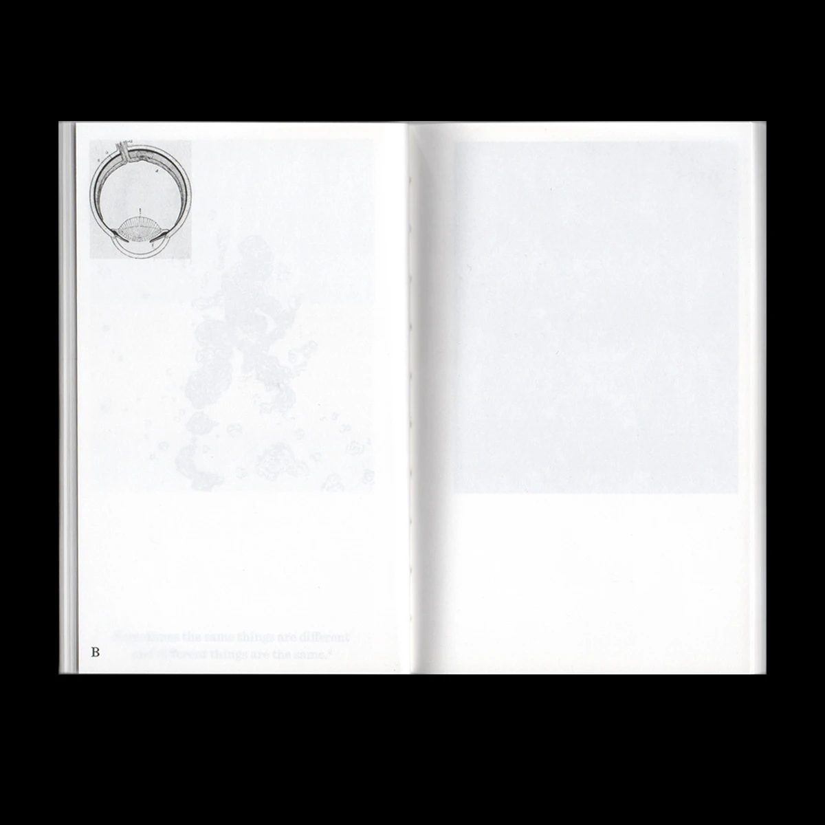 Olho direito. Arco-íris. Neste mapa, fotografias e desenhos conduzem-nos por diversos estados físicos, formas e lugares — reais e imaginários, naturais ou artificiais. Estas imagens expõem a fragilidade da percepção humana quando confrontada com a incapacidade de compreender ou significar aquilo que vê. Ainda que, sem sabermos, aquilo para que olhamos nos possa ser tão familiar. Movimento, cor, temperatura, transparência, luz, água. Arco-íris. Olho esquerdo.