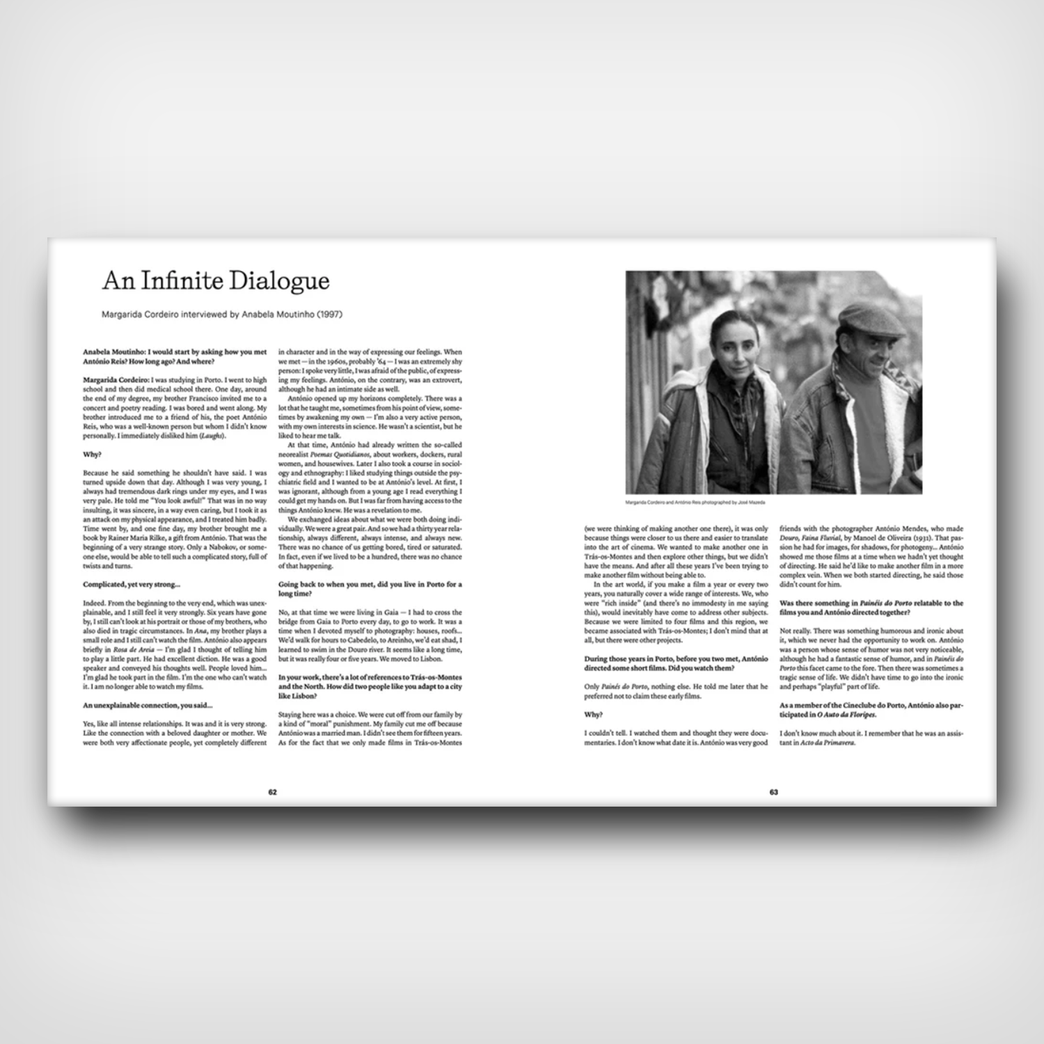Following Courtisane’s multiple programs dedicated to the filmmakers’ work, this volume gathers a selection of texts for the most part available in English for the first time. It also includes interviews with Cordeiro and Reis conducted throughout the 1970s, ’80s, and ’90s, which map the filmmakers’ conception of art, film, and their own practice. This archival record is complemented with more recent sources, which provide a distanced, historical assessment of their work, as well as some newly commissioned critical texts and a smattering of poems and literary fragments that are featured in their films." [Courtisane]