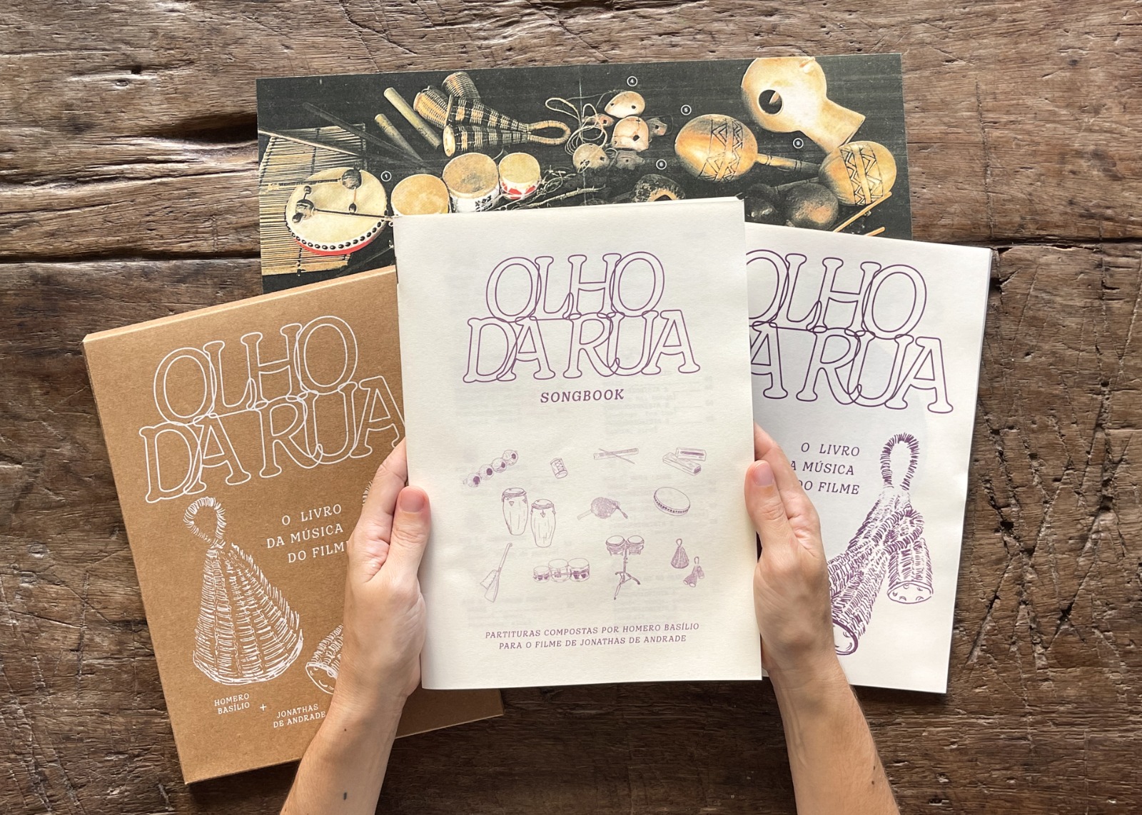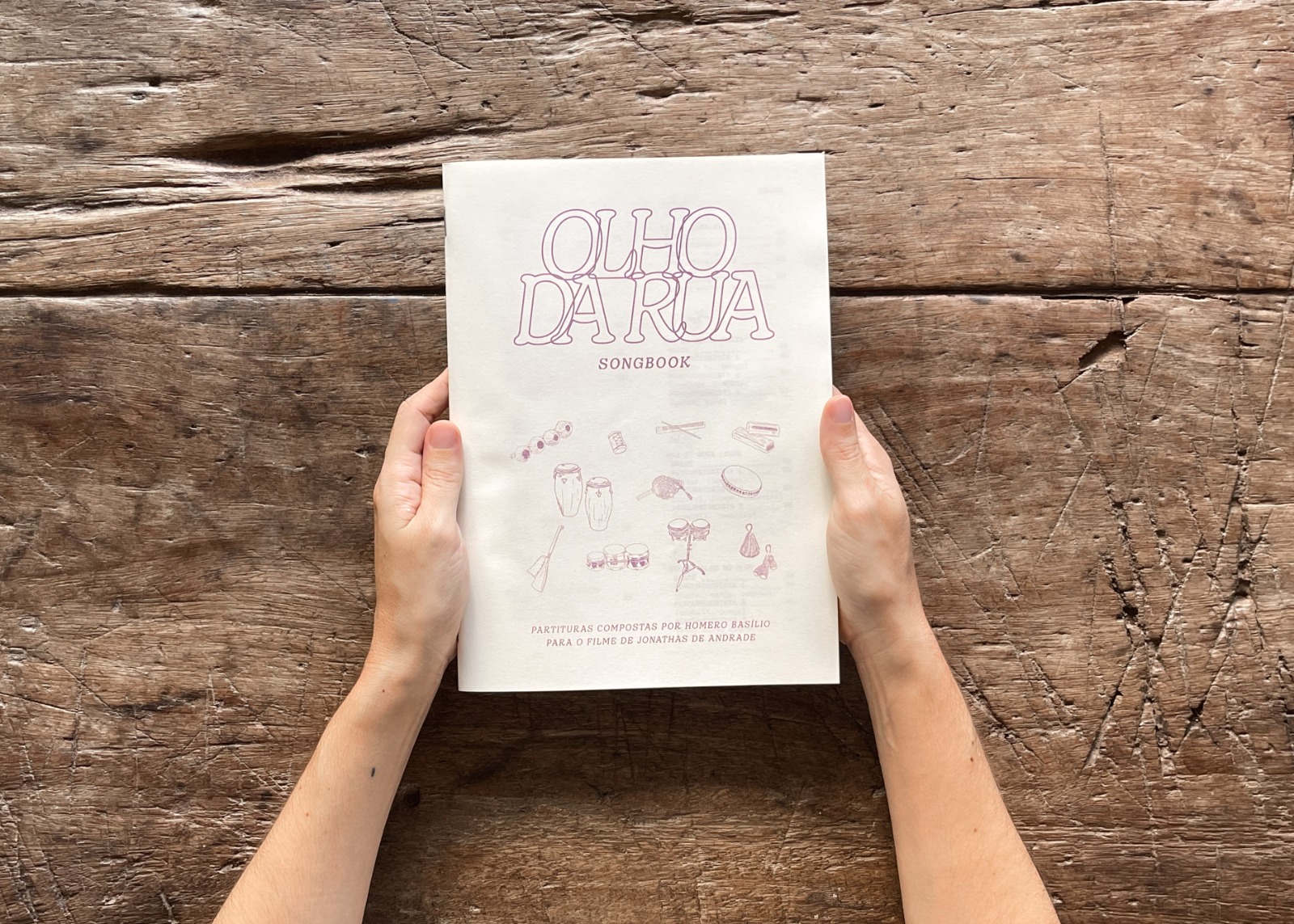 “Olho da Rua” é um livro que conta a história do filme homônimo de Jonathas de Andrade a partir de sua música, composta por Homero Basílio. O livro traz dentro de uma caixa impressa em serigrafia três peças: um songbook com as partituras e a história de seus instrumentos, uma segunda brochura que traz, em cena e som, as vozes de seus criadores, estabelecendo um diálogo com o Teatro do Oprimido de Augusto Boal, método que instigou as proposições teatrais da obra.