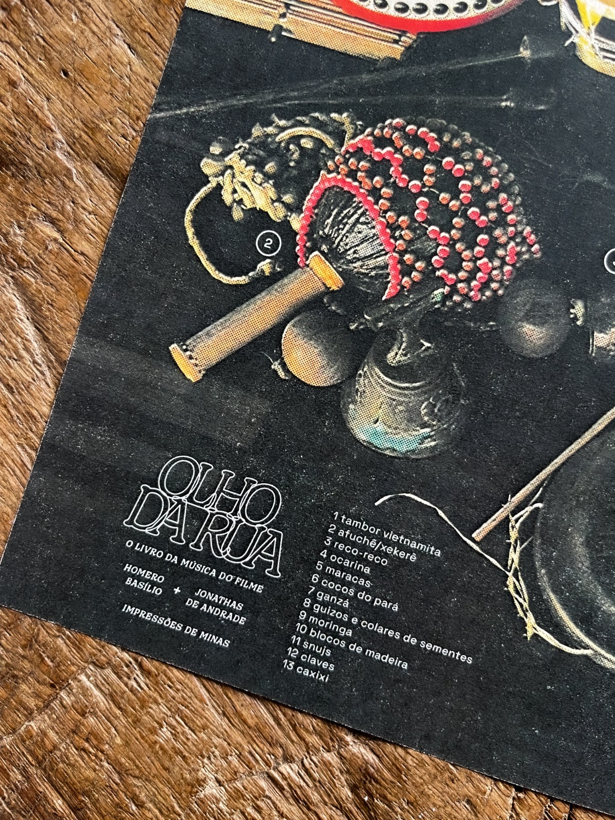 Com fotografias e ilustrações inéditas, textos por Jonathas, Homero e Márcio Bastos, o projeto gráfico assinado por Priscila Gonzaga é um convite a adentrar os sons que permeiam o filme — uma rica textura que nasce da mistura de instrumentos de raízes indígenas e de todo o mundo, orquestrada pela ampla e diversa experiência musical de Homero.